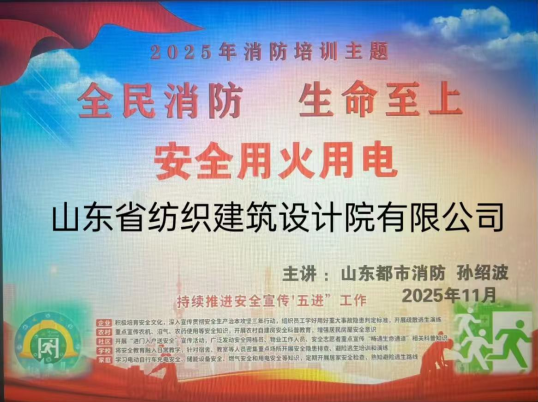 為積極響應(yīng)2025年全國"消防宣傳月"活動號召,11月14日,山東省紡織建筑設(shè)計(jì)院有限公司在漢峪金谷A2-5棟辦公區(qū)開展以"全民消防、生命至上——安全用火用電"為主題的消防系列活動。